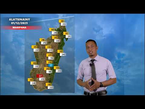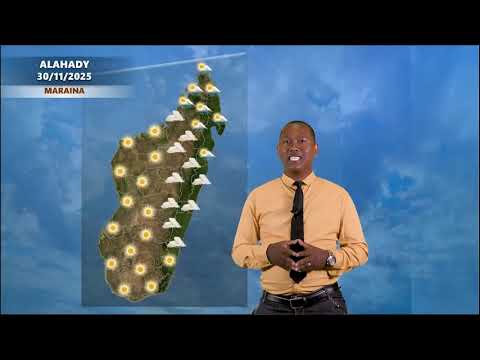 Des pluies orageuses sont attendues sur DIANA, SAVA, AMBATOSOA, ANALANJIROFO et SOFIA. On prévoit des averses isolées localement orageuses sur ALAOTRA-MANGORO, ATSINANANA, VATOVAVY, FITOVINANY et à l’est des hautes terres. Des averses locales toucheront également ATSIMO ATSINANANA, ANOSY, ANDROY et IHOROMBE. Ailleurs, le temps sera peu nuageux
