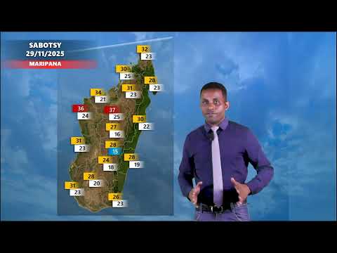 Des averses sont attendues sur Nosy be, Sambirano et ATSINANANA. On prévoit un temps pluvieux sur ATSIMO ATSINANANA et Taolagnaro. Ailleurs, le ciel sera nuageux a partiellement nuageux