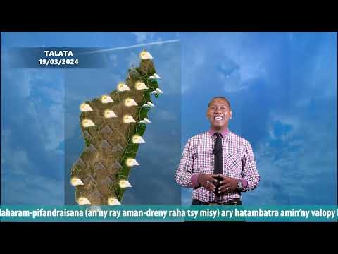 Des averses sont prévues sur SAVA et Maroantsetra. Il fera peu nuageux sur DIANA, SOFIA, ANDROY, le reste d’AMBATOSOA, une bonne partie d’ATSIMO ANDREFANA et d’ANOSY, ainsi que Mahajanga. Des pluies orageuses modérées seront attendues sur Toamasina et Brickaville. Il pleuvra des averses isolées localement orageuses sur le reste du pays.