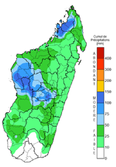 Pour la semaine du 09 au 15 Mars 2026, des cumuls de précipitations modérés à abondant (75 à 150 mm) sont prévus dans les districts des régions de Diana, Sava, Sofia, Melaky, Boeny, Bongolava, Itasy, Vakinankaratra, Analanjirofo, Ambatosoa, Atsinanana et les ditrsicts de Kandreho, Maevantanana, Nosy Varika, Miandrivazo, Belon’i Tsiribihina, Moramanga et Anosibe Anala.